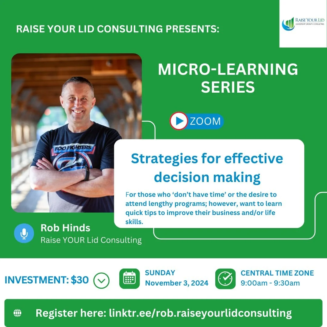 To register, go to: linktr.ee/rob.raiseyourlidconsulting